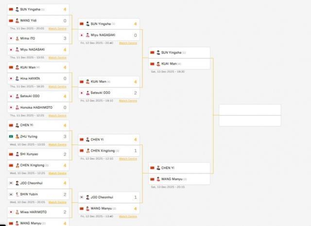 WTT總決賽女單四強(qiáng):孫穎莎vs蒯曼、王曼昱vs陳熠